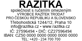 Printy 4918 Navrhnout otisk a vložit do košíku 75 x 15 mm Běžná cena: 767 Kč Vaše cena: 652 Kč Příklad otisku 1:1